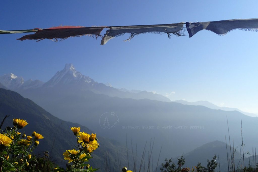 We trekked through the Annapurna region with two Nepali friends and a guide who became a friend. Spending your days with people you enjoy makes life worth living. My favourite walking companion was a grandmother on her way up to the next village to work in the teahouse there. She was just as fast as I was, chatting away with our friends. I have a new life goal. (Above: Macchapucchre (Fishtail) seen from Tadapani)