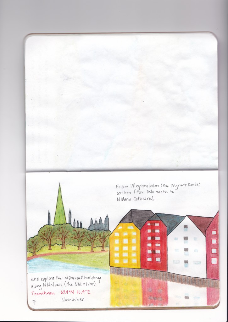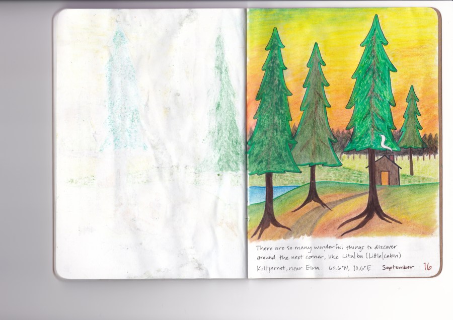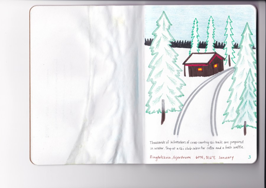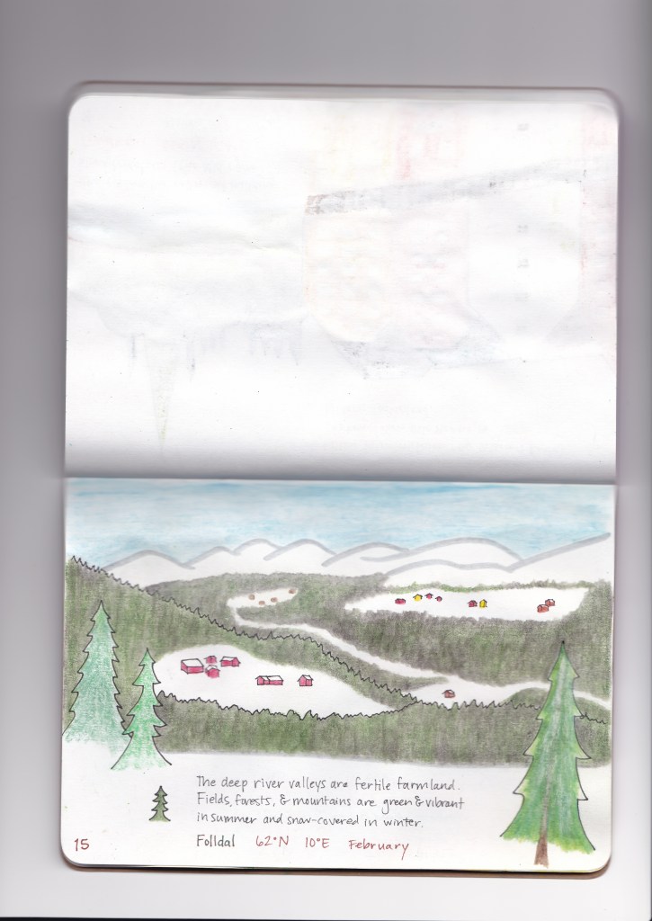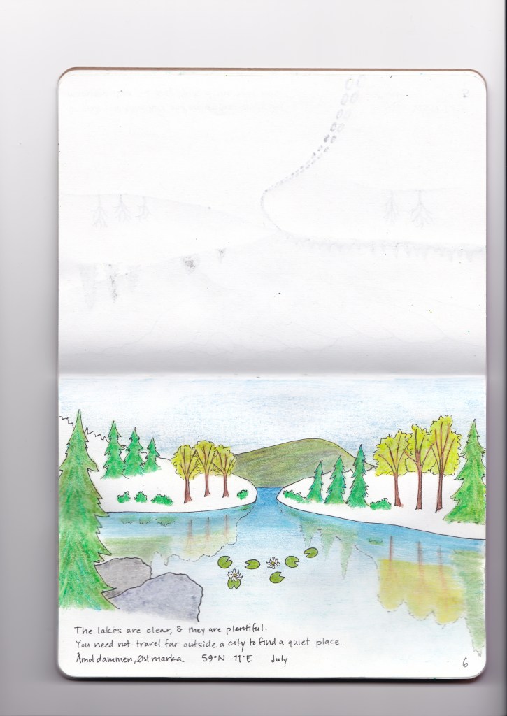 Welcome to Life in Norway, a book of illustrations for The Sketchbook Project. The drawings are loosely inspired by the theme A Different Perspective. I explored with watercolour, charcoal, crayons, oil pastels, and pen.