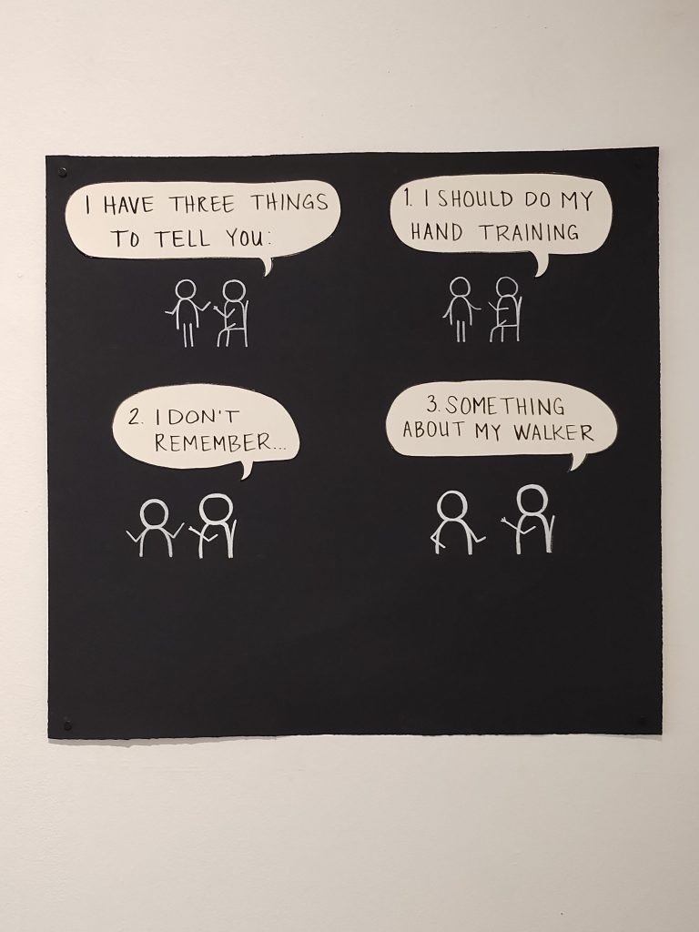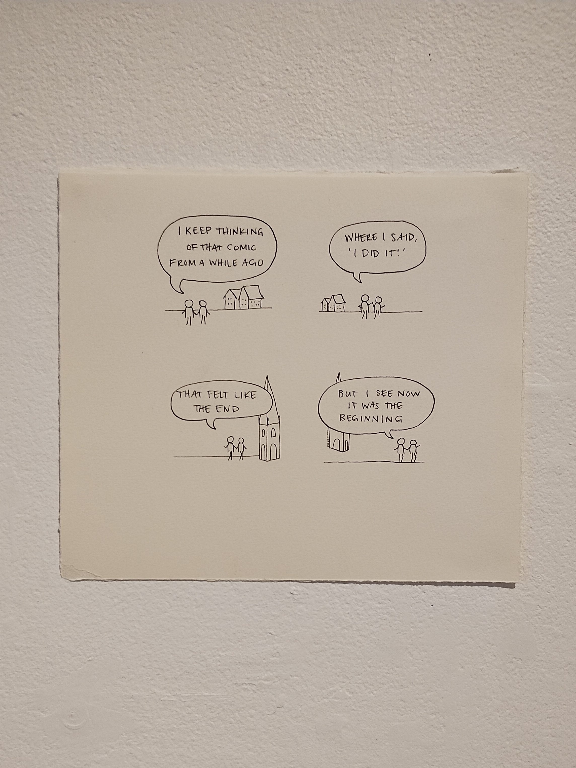 My first public exhibition of comics I’ve been calling Life After Stroke. They were received with kindness and interest, and I plan to pursue them more next semester.