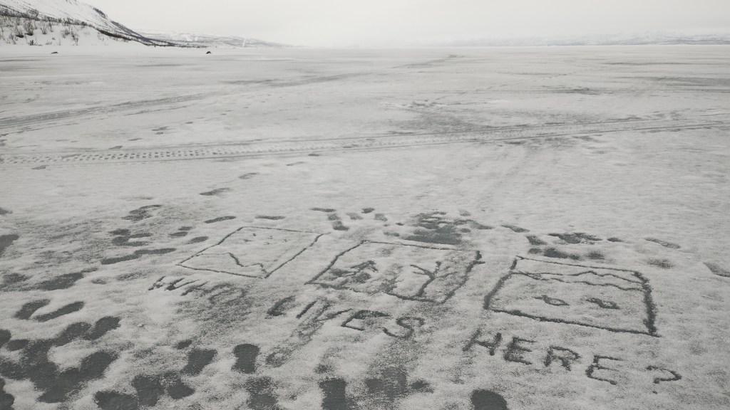 Our home for a week was Abisko Scientific Research Station. We learned and explored, discussed and debated. Åsa Andersson Broms suggested I make comic installations on the lake, which I gladly did. This is one of three comics I created on frozen Torneträsk.
