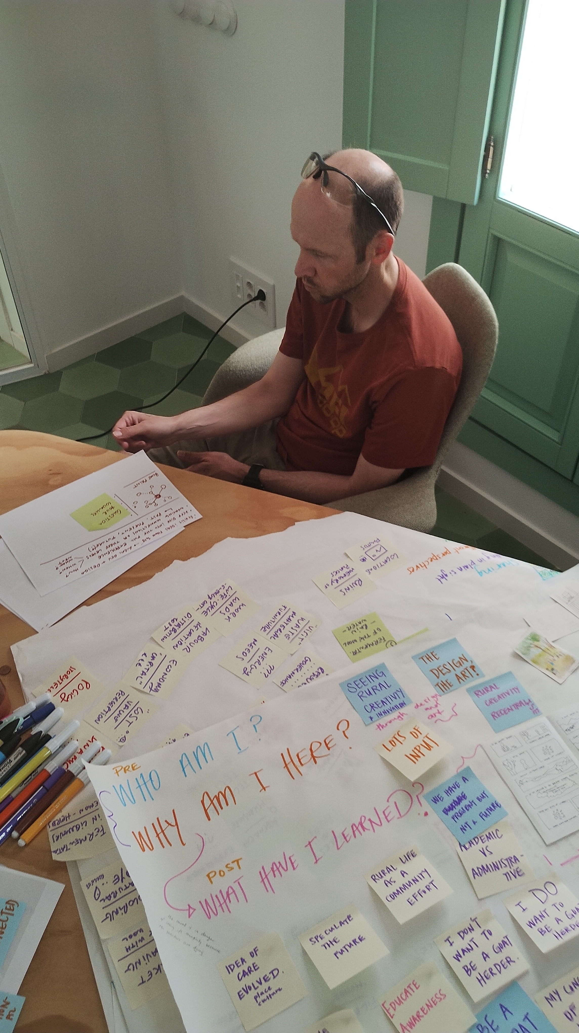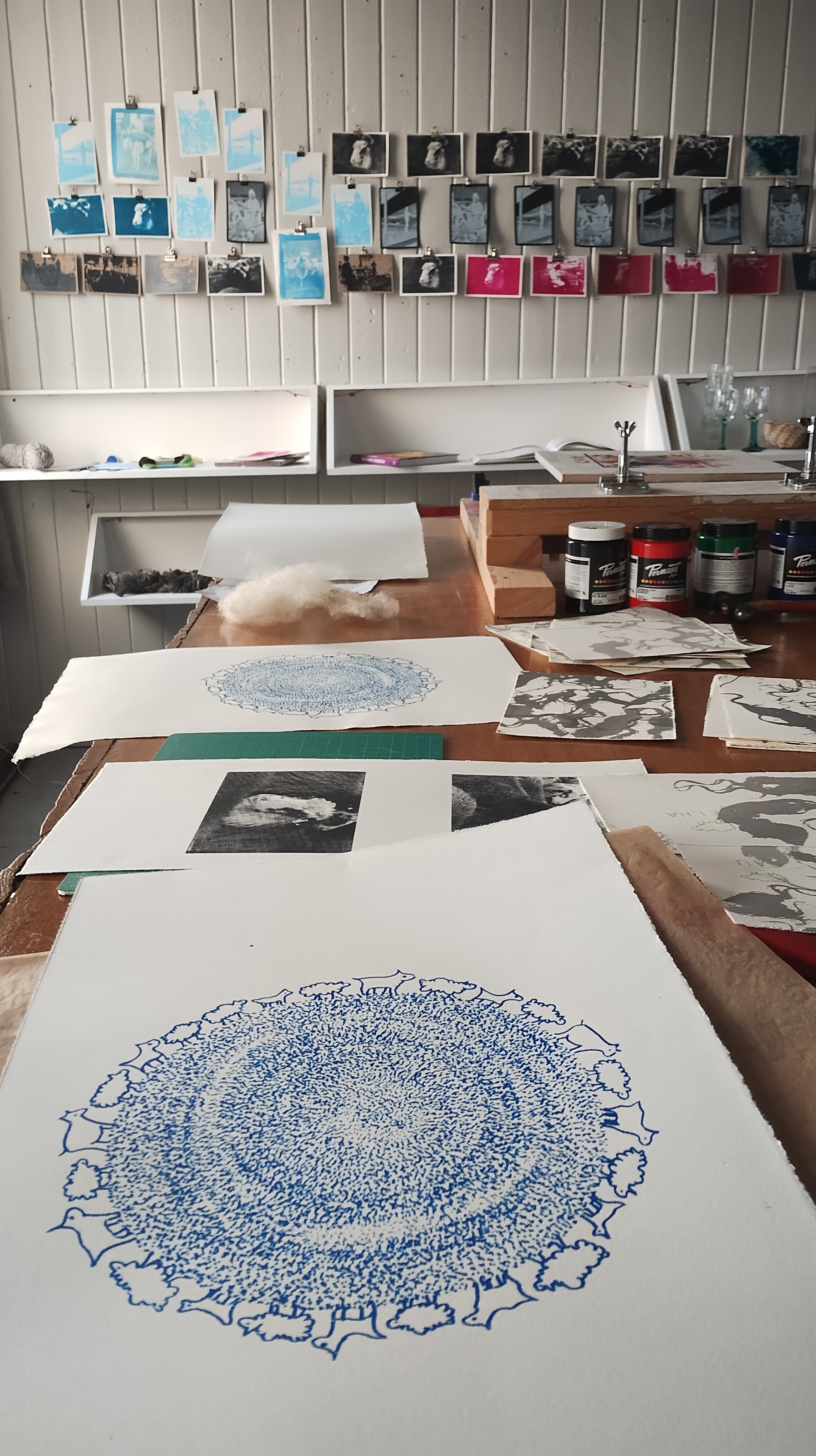 Learning about sheep-shearing, wool spinning and carding, screenprints, cyanotypes, cheese-making, sheep-tracking, art and rural life