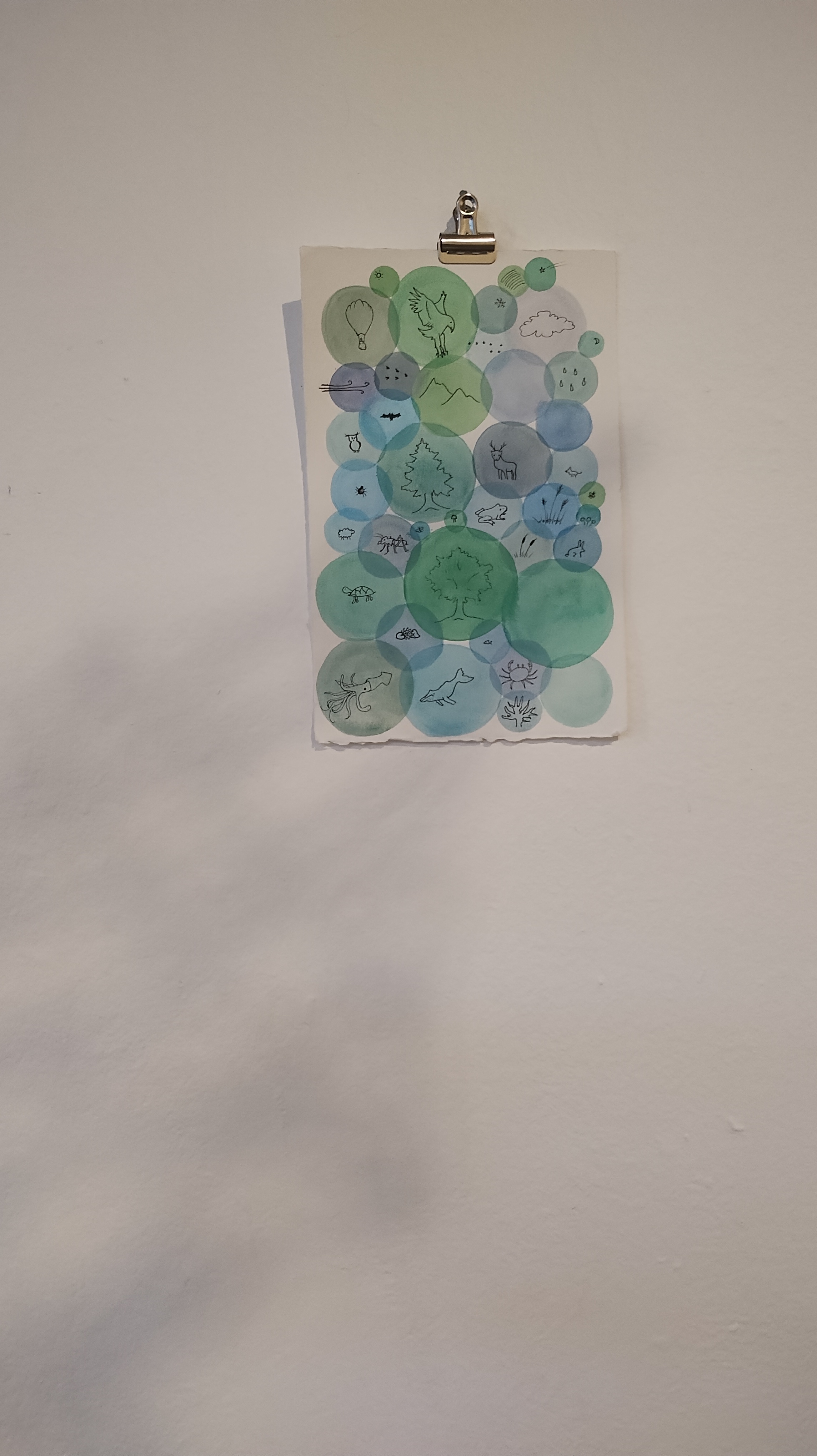 Comic illustrations, watercolour and ink illustrations, chalkboard illustrations, screenprints from ink illustrations (collaborations with Morten Almaas and Esther Breslin), cyantotypes (collaborations with Marius Reed), ink and watercolour diorama, Life as a Tree cardboard kits, Life as a Tree 3D cardboard tree, Life as a Tree illustrations, Life as a Tree photograph, tree branches with planed wood